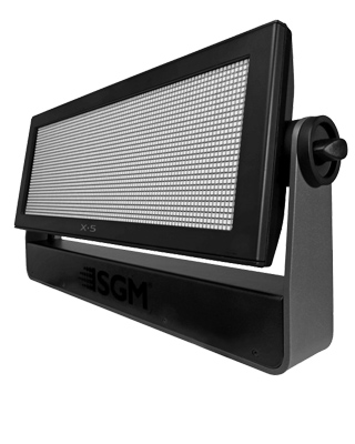 The X-5 is a white LED strobe, with 2,970 LED’s, power consumption of 360W (standby power of 6W), with lamp life of 50,000 hours. Housed in a black, slim aluminium chassis, it contains 160° lens as standard, tilt of 0°-180°, 1 or 4 DMX channels and set up is via OLED 5-button graphic display.