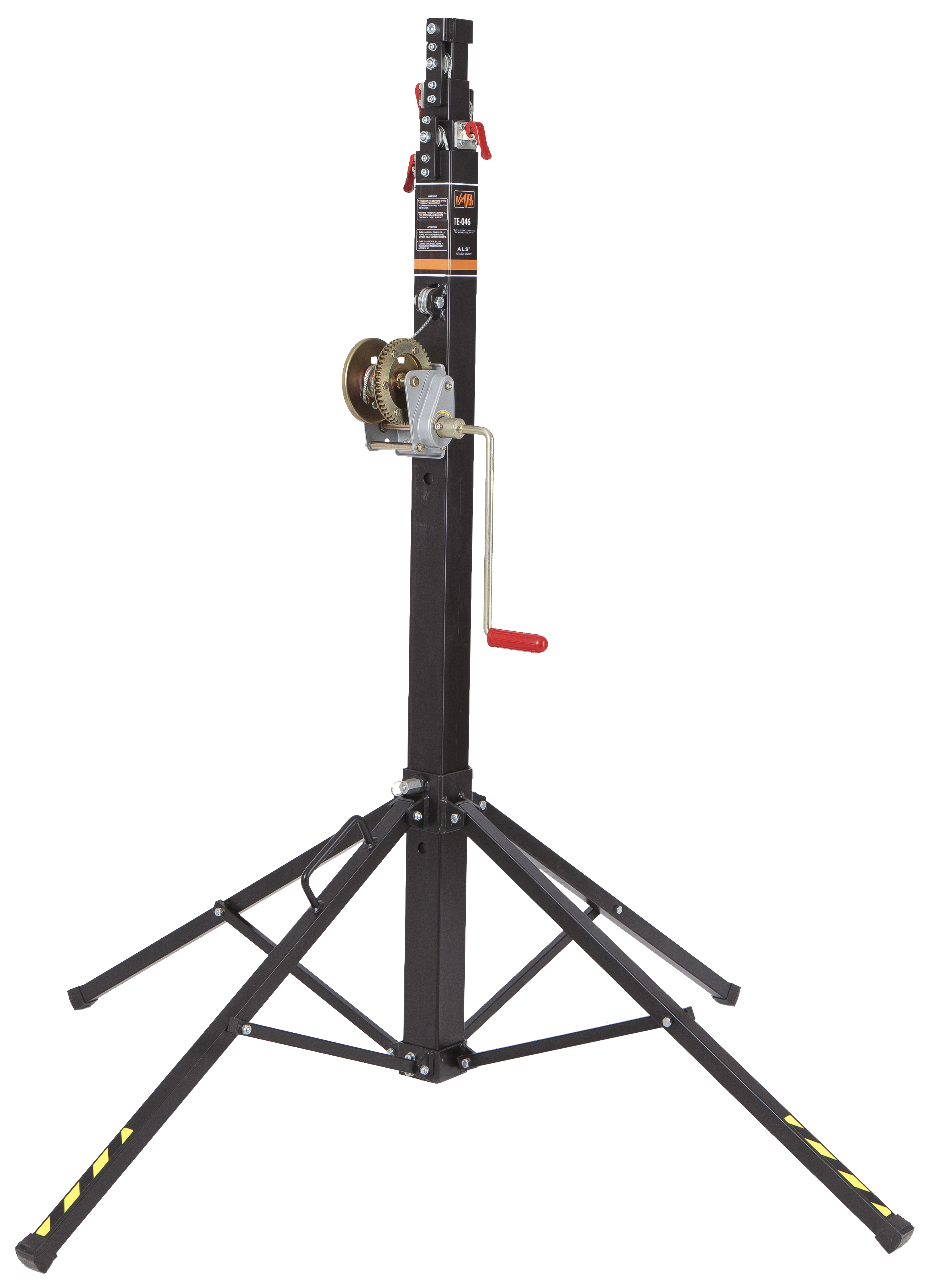 It also includes our unique ALS (Auto Lock Security) system a safety feature which automatically locks the lift masts as they rise. The TE-046 towerlift is the ideal tool for any small to medium sized rental company looking to rig sound, light and/or Trussing quickly and safely.