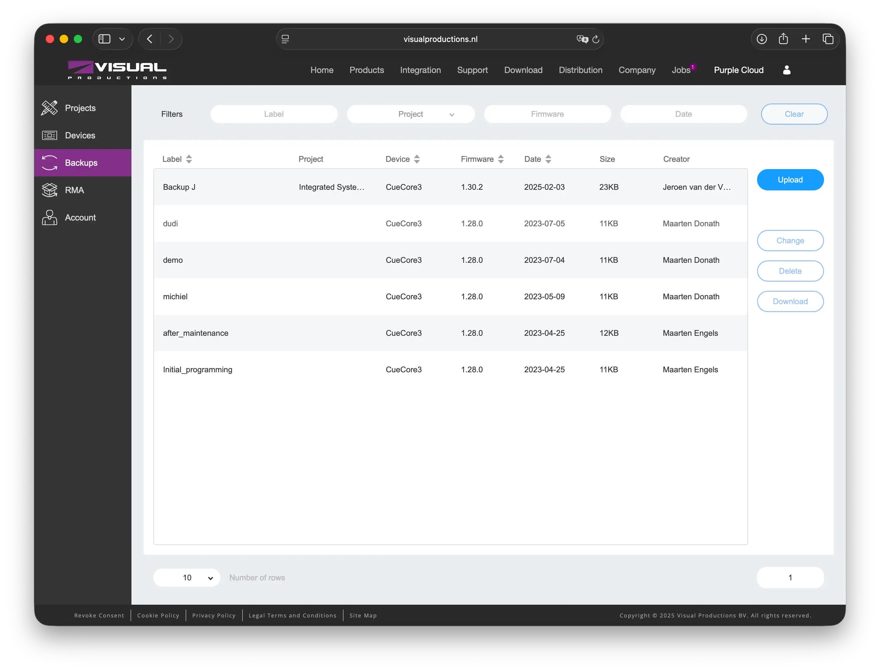 Zabezpiecz swoje dane na CueCore3, korzystając z kopii zapasowych w Purple Cloud. Pliki są bezpiecznie przechowywane online i natychmiast dostępne dla upoważnionych członków zespołu w Twojej organizacji.