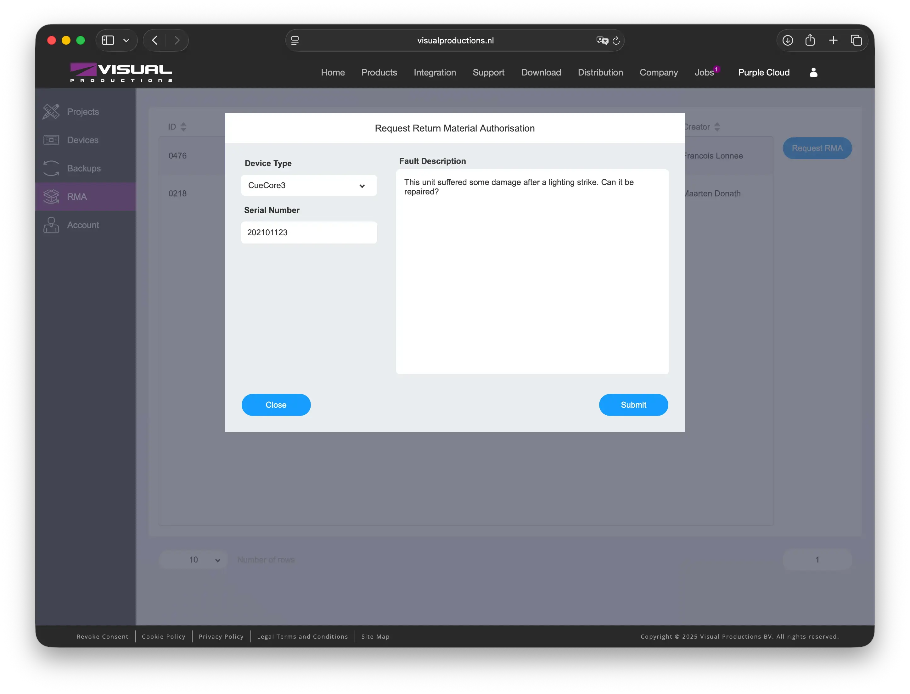 Chmurowy proces RMA został zaprojektowany tak, aby uprościć zgłoszenie, śledzenie postępu oraz odbiór naprawionego lub wymienionego kontrolera. Za pośrednictwem platformy Purple Cloud możesz zgłosić RMA online z dowolnego miejsca na świecie i monitorować postęp w czasie rzeczywistym. System dostarcza również aktualne informacje o statusie naprawy, co pozwala lepiej planować dalsze działania.