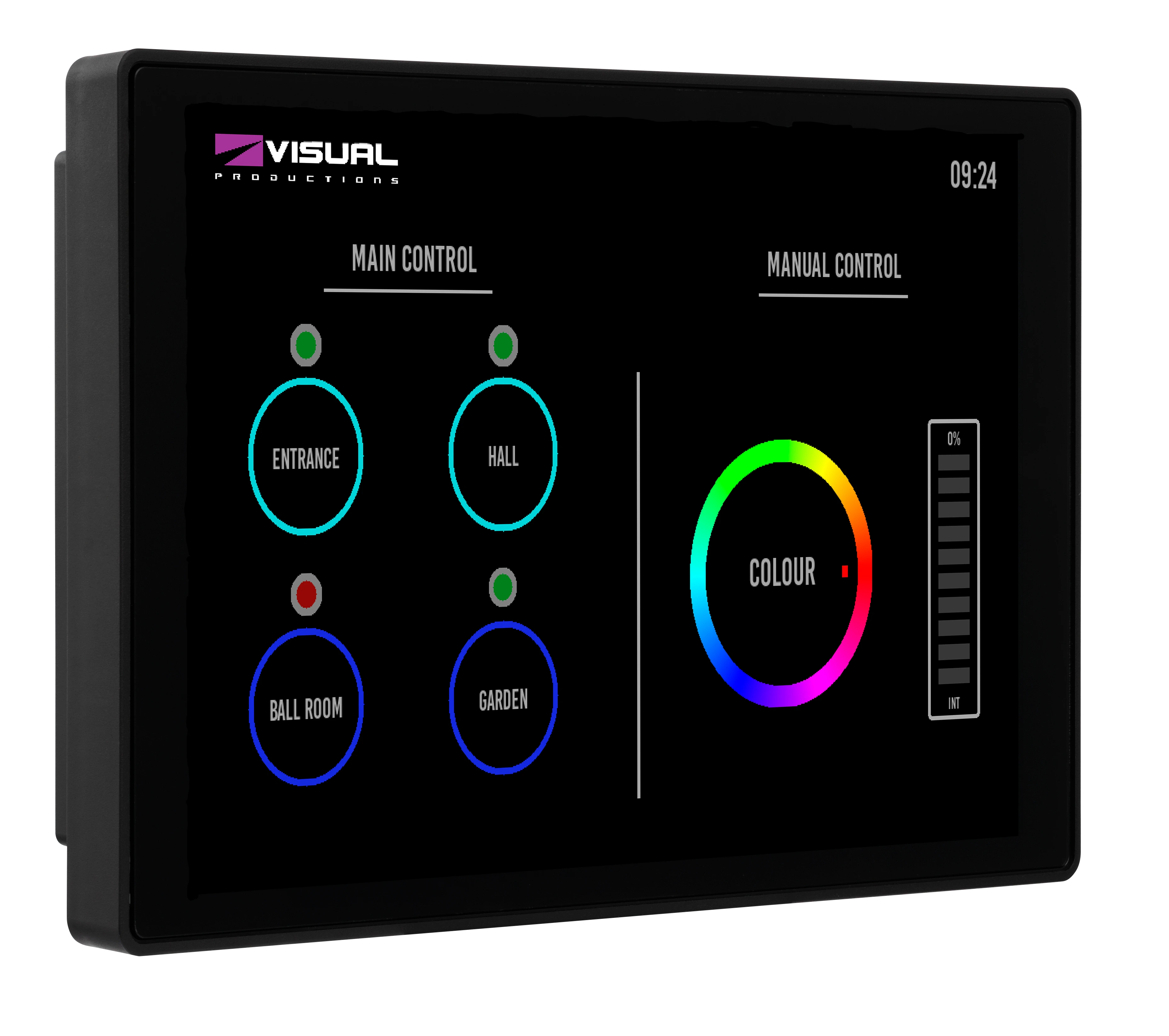 KioscTouch2 to naścienny ekran dotykowy o przekątnej 8″, zaprojektowany jako intuicyjny interfejs sterowania systemami oświetlenia i AV. Urządzenie łączy w sobie responsywny, wysokiej rozdzielczości ekran z szerokimi możliwościami personalizacji, dzięki czemu idealnie sprawdza się w nowoczesnych instalacjach: od scen teatralnych i przestrzeni eventowych, przez muzea i obiekty komercyjne, aż po zaawansowane systemy sterowania.